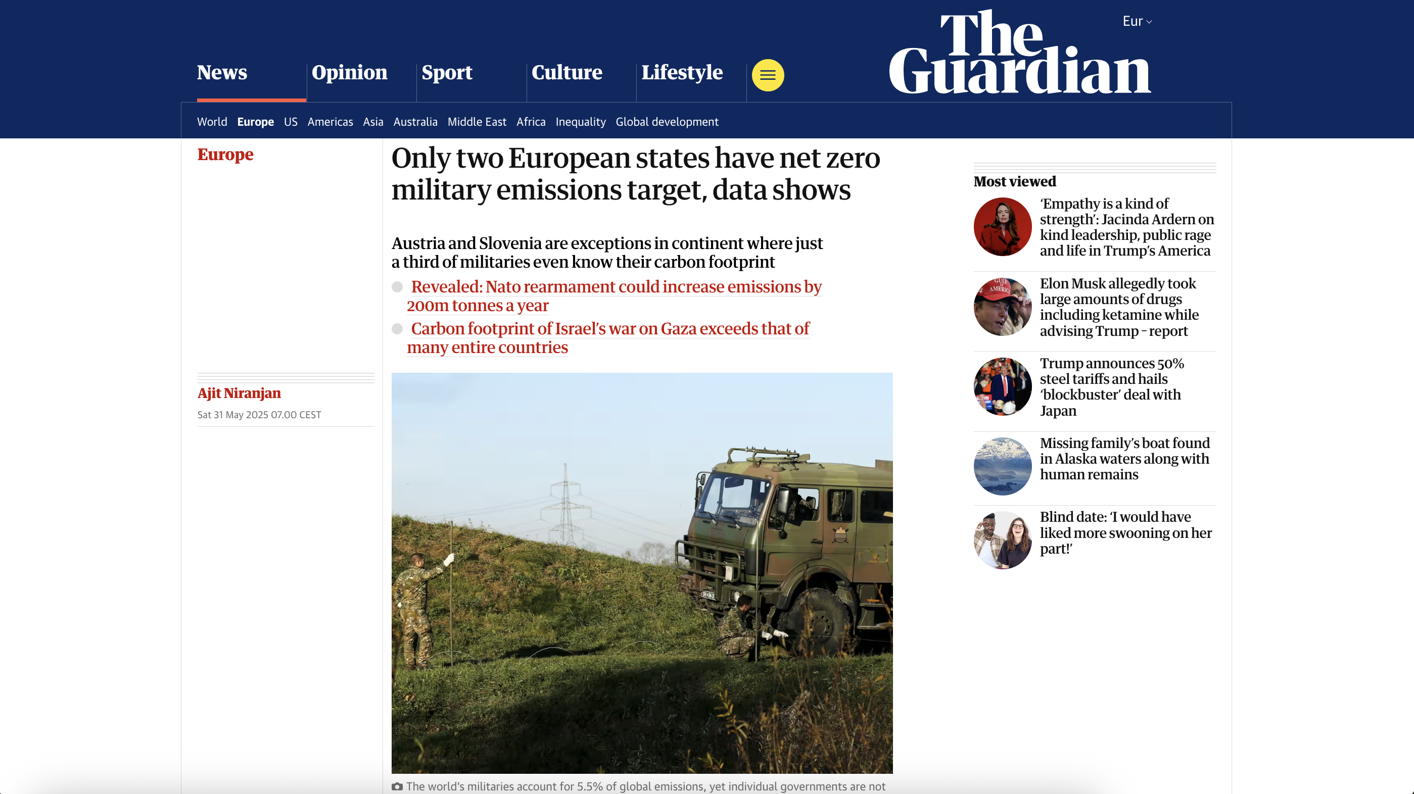 - Quoted in: Only two European states have net zero military emissions target, data shows. The Guardian. May 2025.